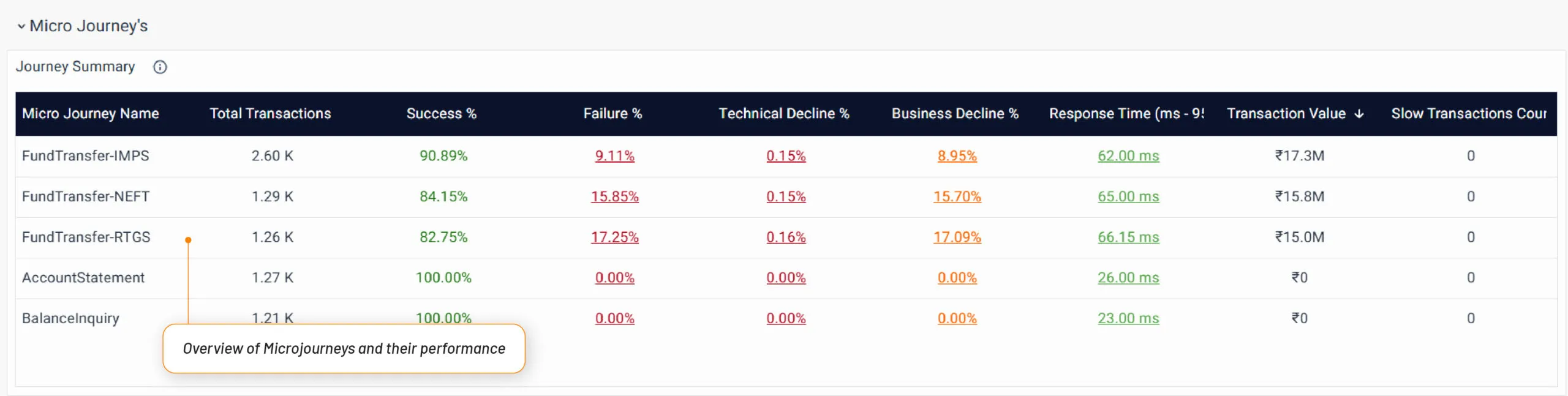 - Key Business Metrics for Critical Payment Journeys:For high-impact journeys like instant (ex: UPI) and bill payments, vital metrics are tracked such as transaction success rates and customer engagement, achieving up to 20% improvement in transaction success. Identifying and proactively addressing pain points can help improve user retention.