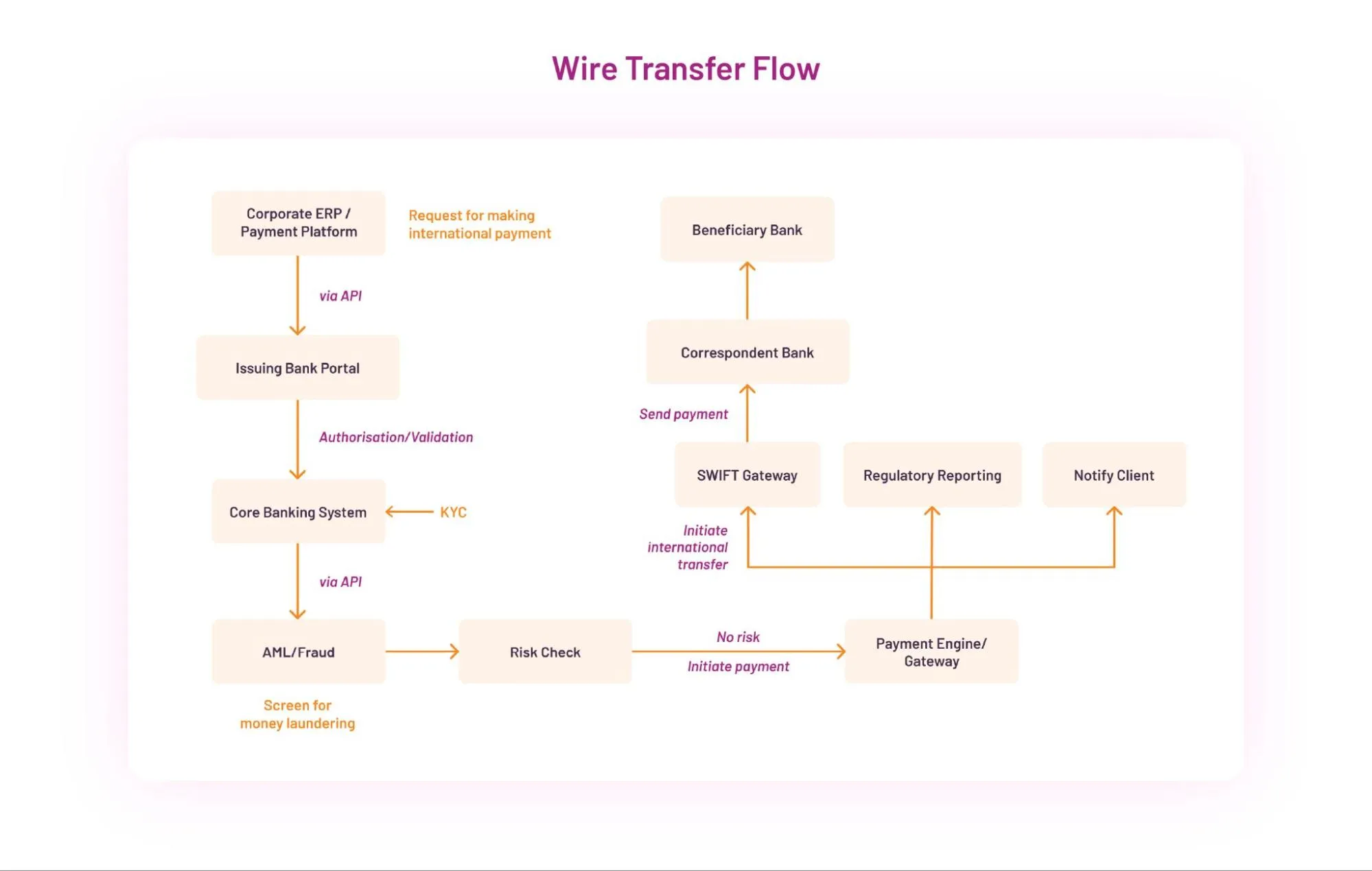 Fig 2: Sample international payments flow in corporate banking