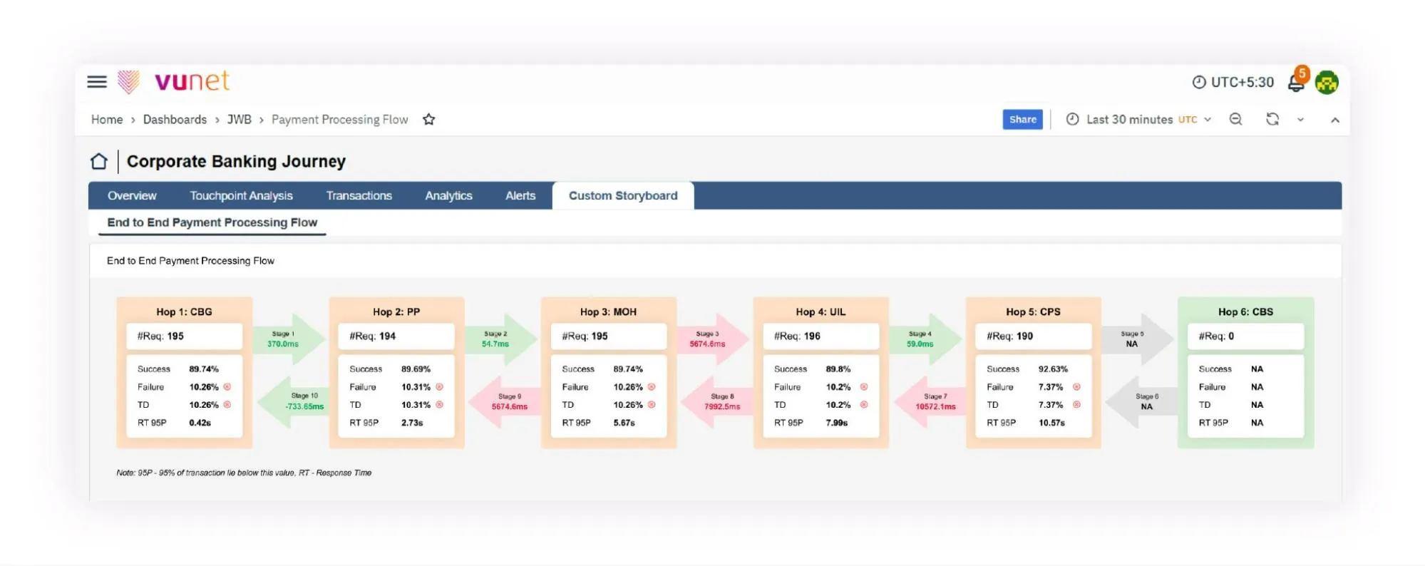 Fig 4: Sample view of end-to-end payment processing flow in VuNet’s Platform
