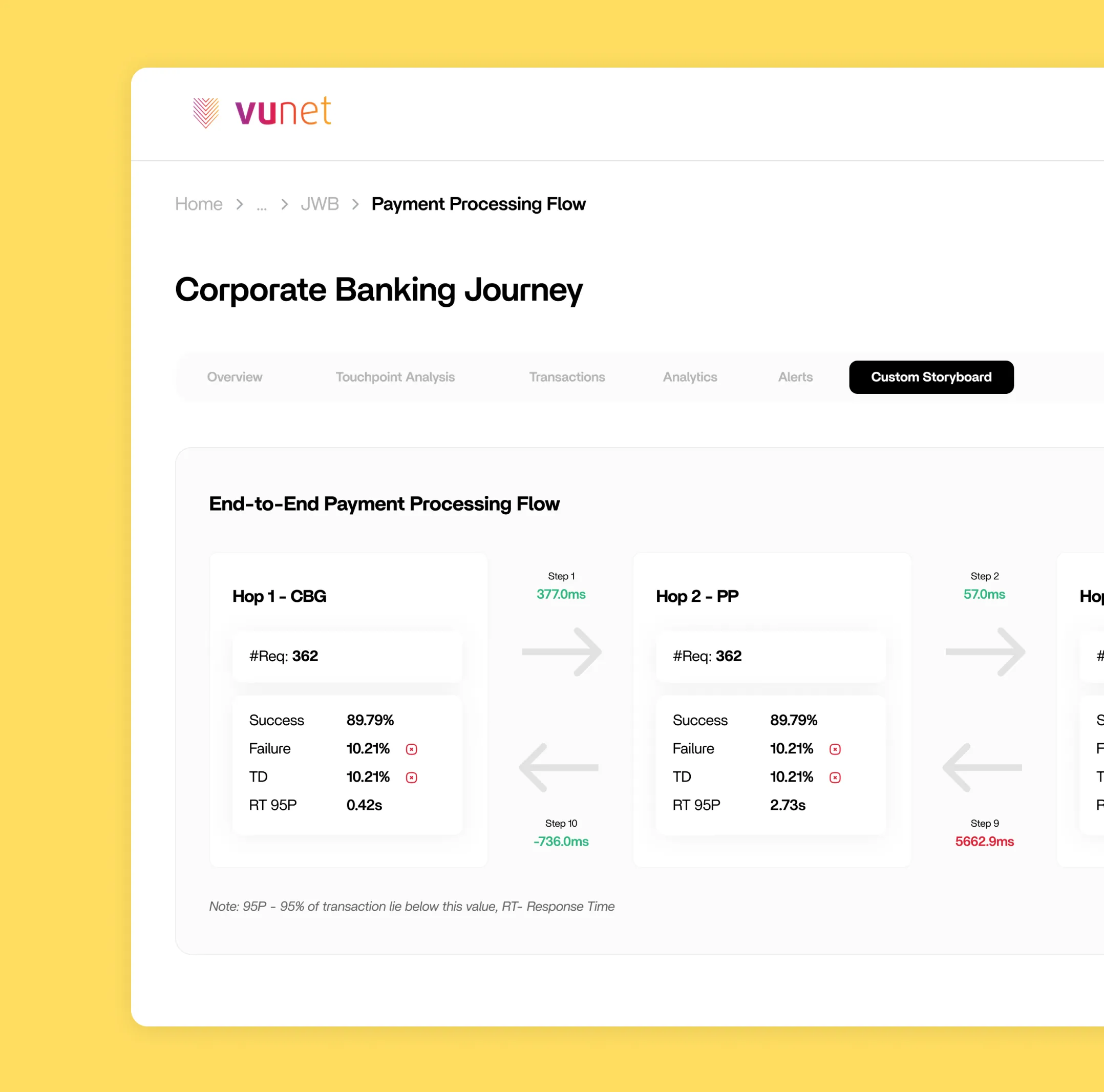 Track B2B transfers, bulk salaries, and EMI collections across every system. VuNet correlates file uploads, validation, payment rails, and settlements into one unified view—showing exactly where transactions flow or fail.